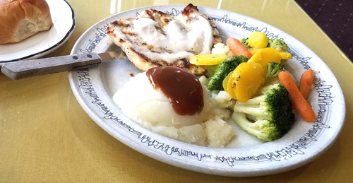 At the Pioneer Cafe in Glendale this is the 'Scoop of Cottage Cheese & Fruit'. This is salad for the people who don't like salad. This is a great healthy snack that will put some nutrients in your system. It's great for those of you waking up with a hangover. Trust me, people are showing up to this place with a hangover. I mean, not me because I'm working but some people.